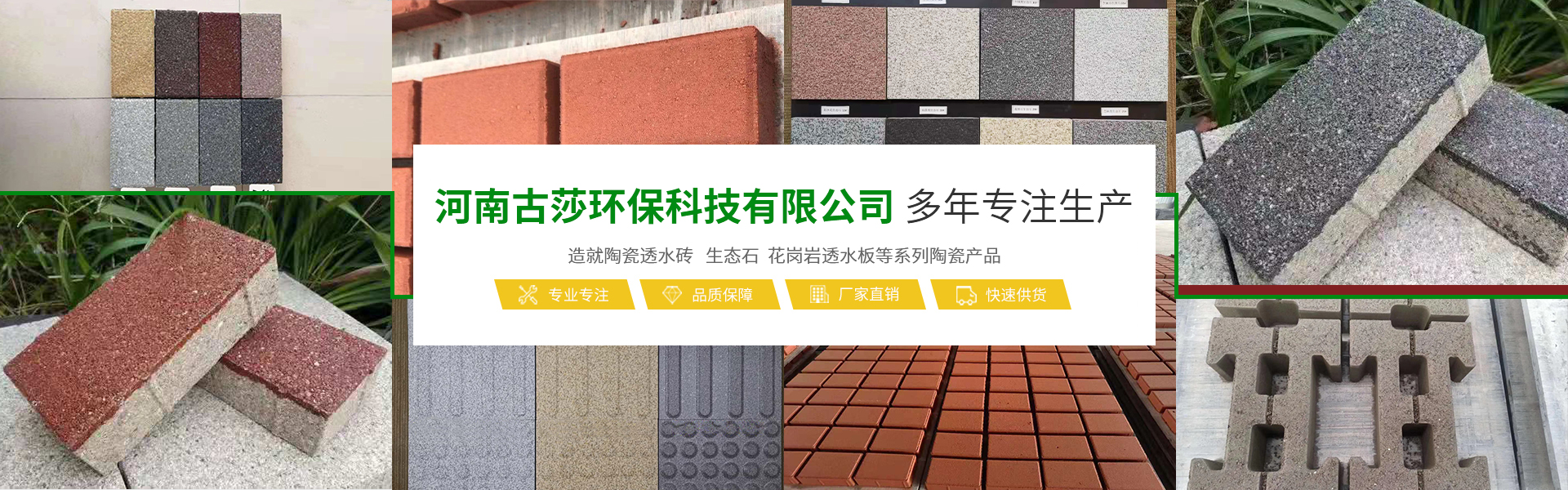 河南古莎環??萍加邢薰究傋溆诮煌屑~城市鄭州,是一家具備研發、生產、銷售能力為一體的綜合性現代化陶瓷企業。本公司專業生產經營生態陶瓷透水磚、生態鋪石、PC仿石材透水磚、PC仿石材景墻磚、普通透水磚、燒結磚等系列產品,完善的研發團隊,完善的生產流水線設備,打造完善的陶瓷企業。古莎環??萍棘F代化陶瓷企業是美化城市,改善生活環境質量的生態環保產品,可廣泛應用于公共建筑廣場、城市道路、公園、藝術景觀、廊道、房地產、別墅住宅小區、地鐵口、車站、高速公路服務區等。古莎環??萍荚谠刑沾善髽I基礎上,另拓展園林綠化、市政施工、瀝青包工包料施工、公路維修等業務板塊,專業培訓了一些園林綠化、市政施工技術人員,并有多年的施工養護經驗以及建筑工程經驗。保證市政工程施工質量以及園林綠化后期養護規范化、專業化。古莎環保科技所遵循的企業與品牌發展思路,是奠定在品質與產品應用之上。環保理念由我們共同倡導,理性思考,以推進步,感性溝通,以共建優越。古莎環??萍寂c大家真誠合作,攜手共進,為助力海綿城市建設,建筑高品質的綠色城市生活貢獻一份力量!